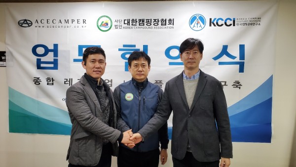 오늘(17일) 오전 10시, 협회 사무실에서 우리 협회(회장 김광희)는 (주)에이스캠퍼(대표 김민성), 한국캠핑문화연구소(소장 석영준)와 업무협약(MOU)을 체결하였다.